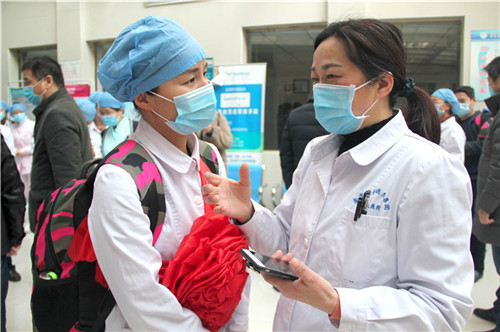 今天送行的隊(duì)伍里,我院腎內(nèi)科醫(yī)生查慶生的身份有點(diǎn)特殊,他是來與自己的妻子、普通外科護(hù)師朱玉娣告別的。作為丈夫,他其實(shí)內(nèi)心擔(dān)憂又忐忑;但同為我院醫(yī)務(wù)人員,他理解更支持妻子支援湖北的決定?!爸拔覀儌z就討論過這件事,也早就商量好了。半夜接到通知之后,他二話沒說就幫我整理行裝?!敝煊矜吠鴰退冒恼煞?,眼神里都是幸福。
